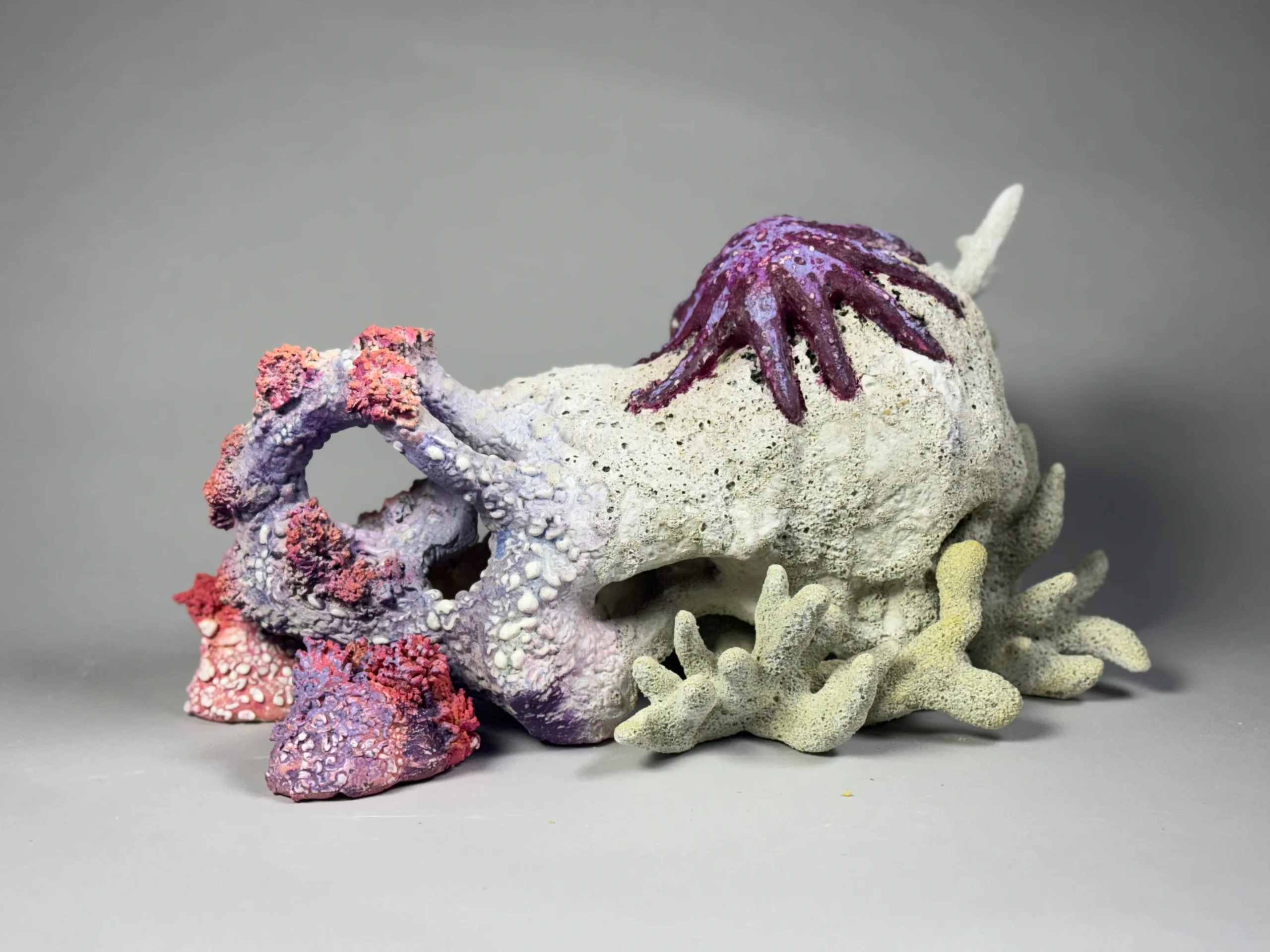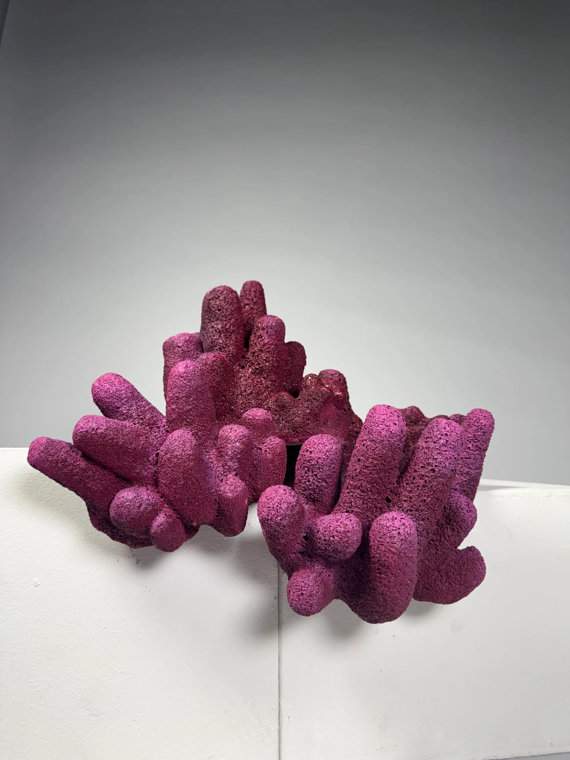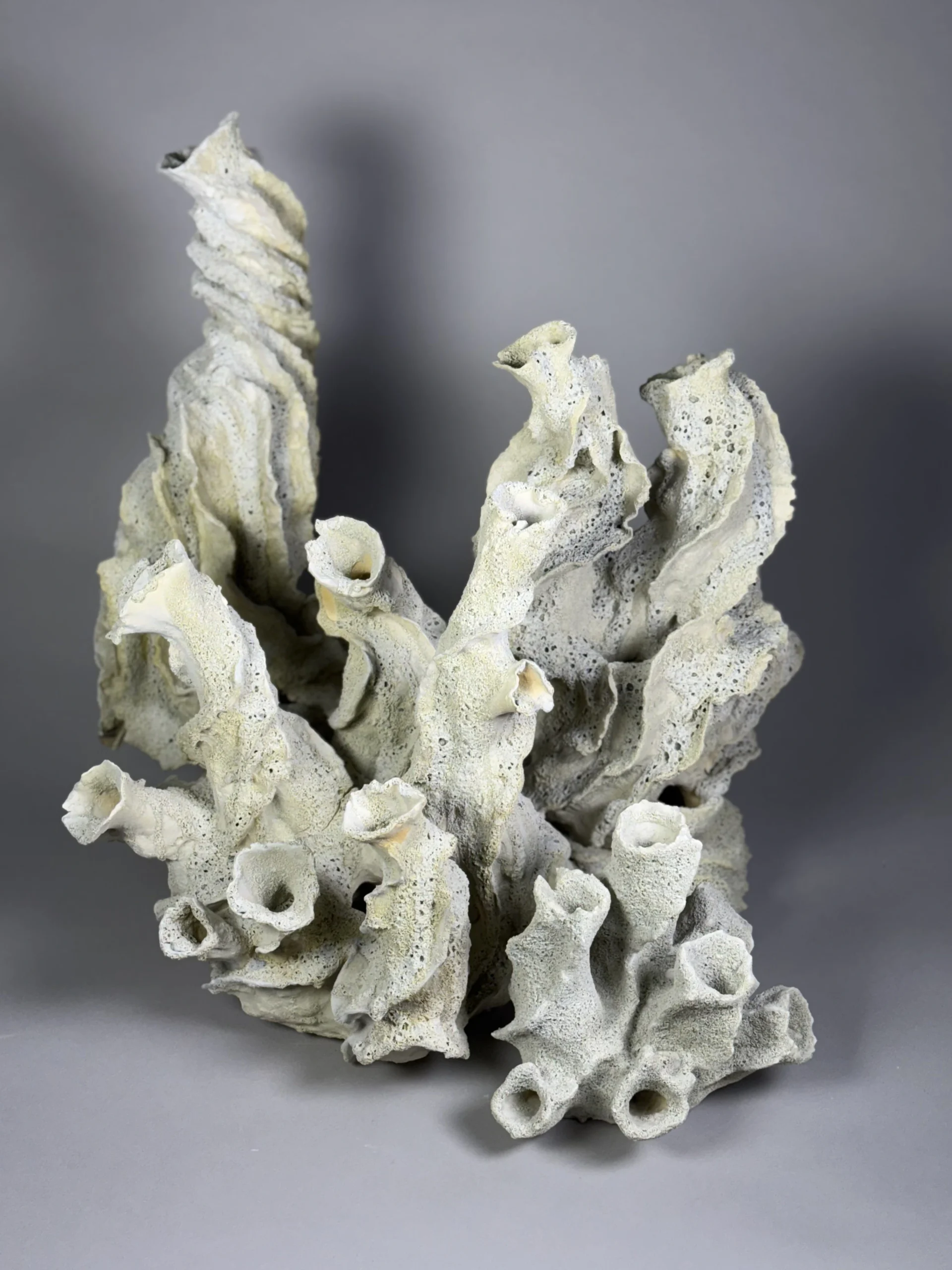 Her recent exhibitions trace a deepening relationship to these oceanic themes: Ebb & Flow (February 2024) presented a body of work inspired by marine organisms, while The Final Reef (April 2025) turns directly toward coral bleaching—treating sculpture as both elegy and call to attention. Through this lens, Eden uses material, texture, and repetition to spotlight what coral reefs make possible—and what is at risk if they disappear.